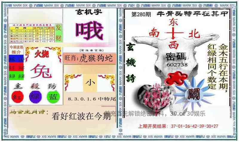 280期:九肖【虎狗蛇马兔牛猴羊】开:鼠42